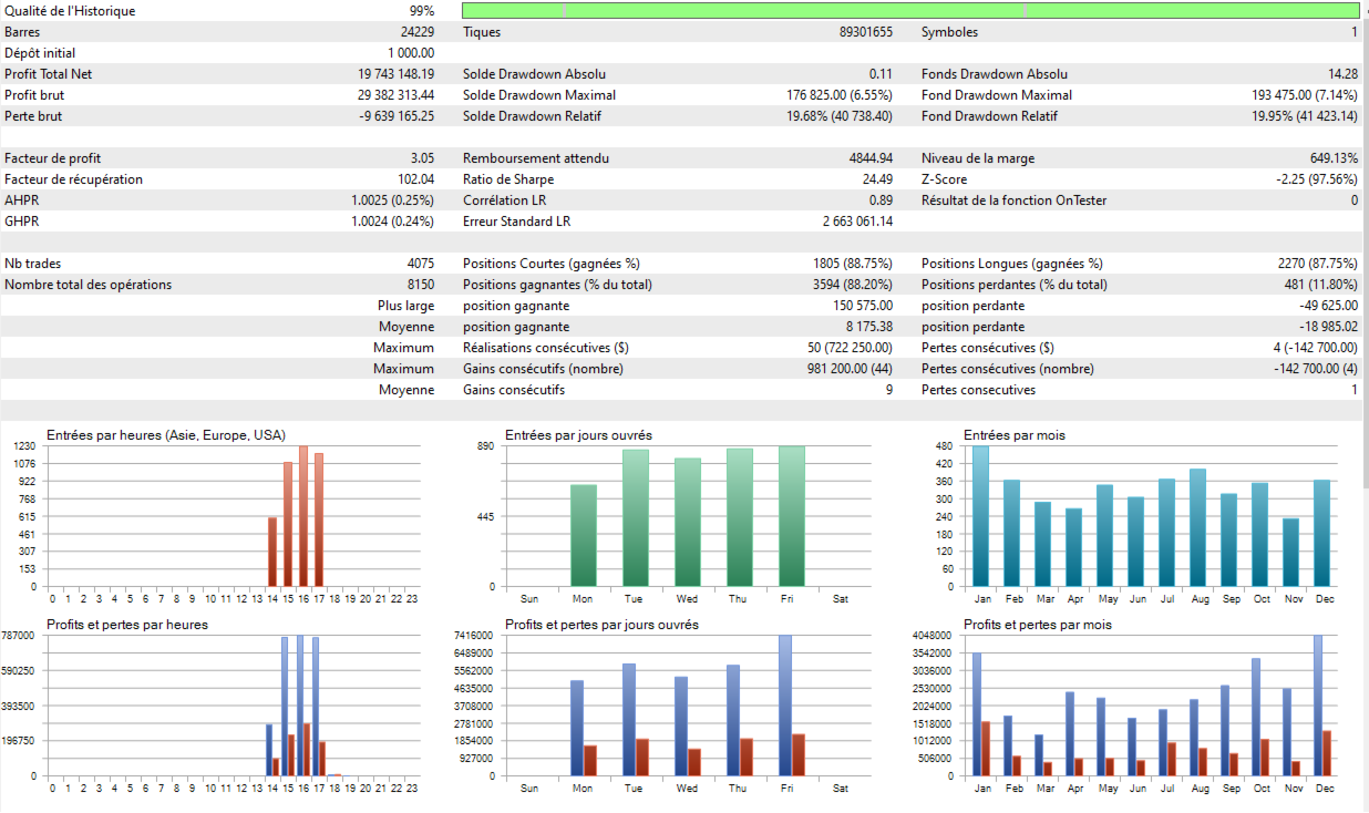 Symbol: XAUUSD (Gold) ONLY (Current Version). The expert is working with the default settings on the XAUUSD pair.
