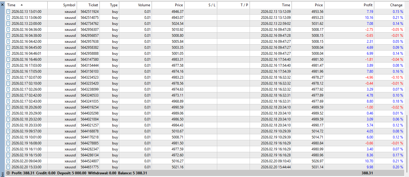 Forward behaviour continues to align with backtest logic under the same configuration. Fixed lot sizing is maintained with no lot multiplication.
