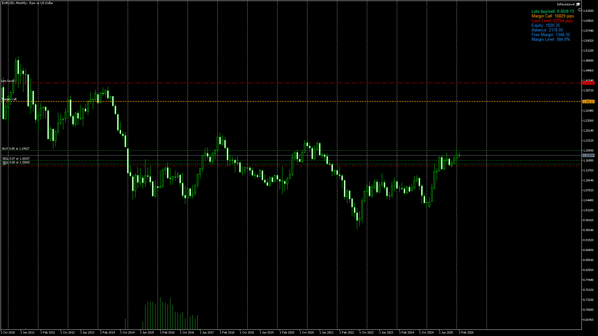 Info Loss Level is an information utility for MetaTrader 5 traders that monitors critical risk levels in real-time and provides clear visualization of deposit loss points.