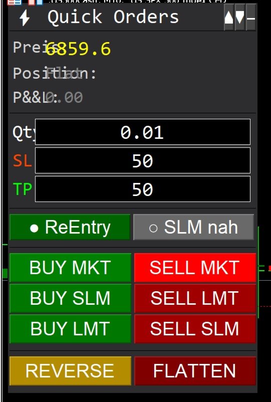 - **6 Order Buttons** — BUY/SELL for Market, Limit, and Stop