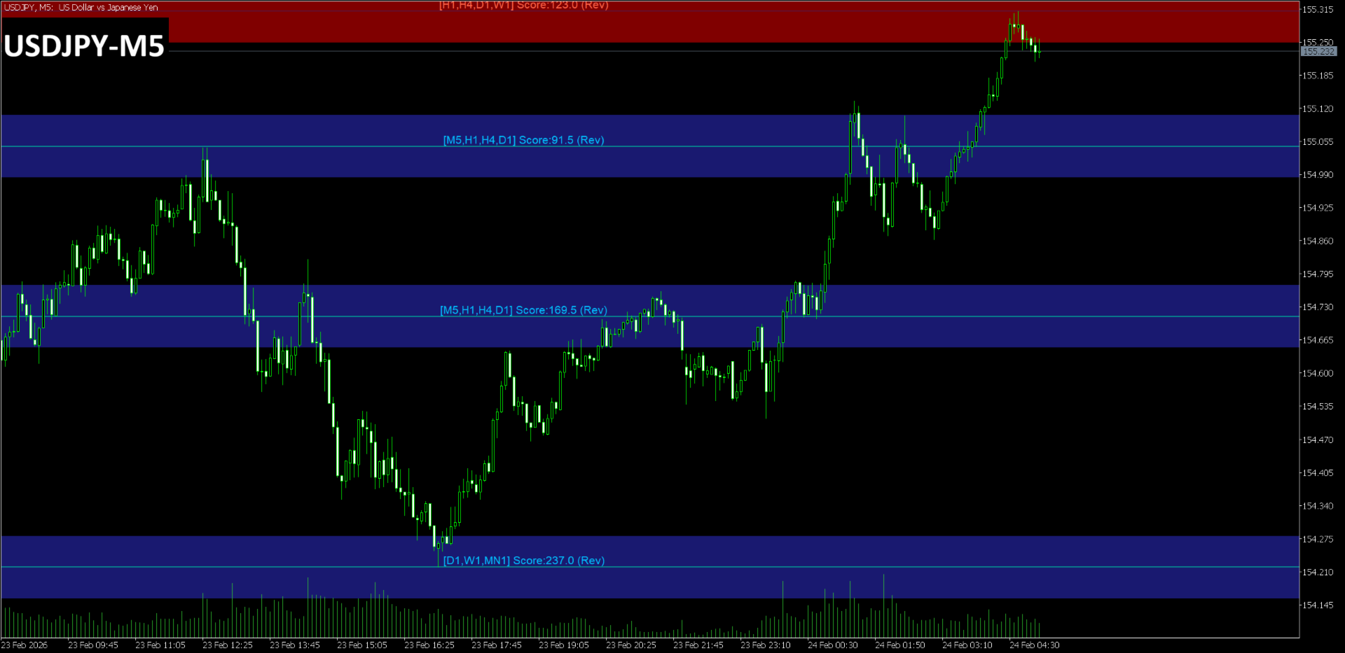 Multi-Timeframe S&R is a technical analysis indicator that detects pivot points across multiple timeframes and displays price levels where these points cluster on the chart. It integrates data from M15 up to Monthly timeframes for its analysis.