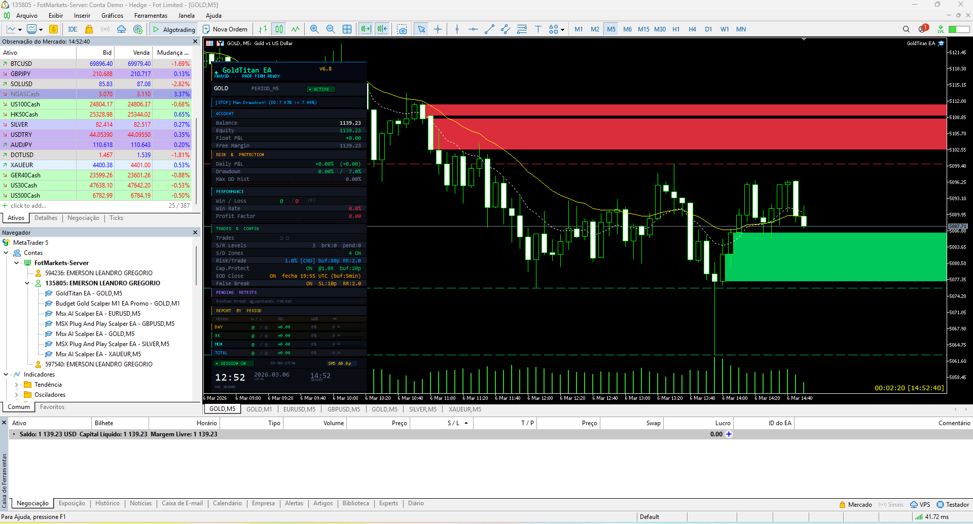 Marcos Aurelio Pozzer #: "I just tested it and it's working very well. You probably didn't trigger something correctly in MT5. This robot only works on GOLD 5 minutes, and in the settings, under the trading sessions/time sessions, set it to false and enable the button for backtesting