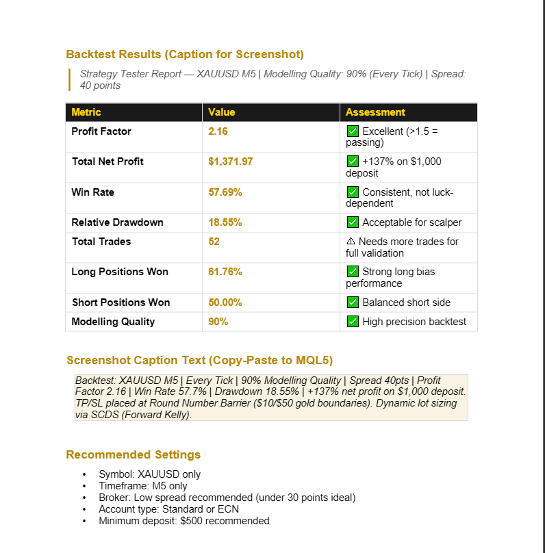 마켓 / MetaTrader 4 / Experts / GoldMind M5 Fear and Structure EA 79 USD 데모 다운로드됨: 1 게시됨: 1 3월 2026 현재 버전: 2.0 적합한 로봇을 찾지 못하셨나요? 프리랜스에서 나만의 로봇을 주문해 보세요 프리랜스로 이동 트레이딩 로봇 또는 지표 구매 구입 방법 EA를 작동시켜보세요 가상 호스팅으로 구매 전에 지표와 트레이딩 로봇을 테스트해보세요 마켓에서 수익 창출을 원하십니까? 제품의 판매량을 나타내는 방법 미리보기 리뷰 코멘트 (1) 제품을 구매하거나 렌트한 사용자만 코멘트를 남길 수 있습니다 Kriangkrai Pongtiwat 2026.03.01 18:26 #1 . 트레이딩 기회를 놓치고 있어요: 무료 트레이딩 앱 복사용 8,000 이상의 시그널 금융 시장 개척을 위한 경제 뉴스 등록 로그인 공백없는 라틴 문자 비밀번호가 이 이메일로 전송될 것입니다 오류 발생됨 Google으로 로그인 웹사이트 정책 및 이용약관에 동의합니다. 계정이 없으시면, 가입하십시오 MQL5.com 웹사이트에 로그인을 하기 위해 쿠키를 허용하십시오. 브라우저에서 필요한 설정을 활성화하시지 않으면, 로그인할 수 없습니다. 사용자명/비밀번호를 잊으셨습니까? Google으로 로그인