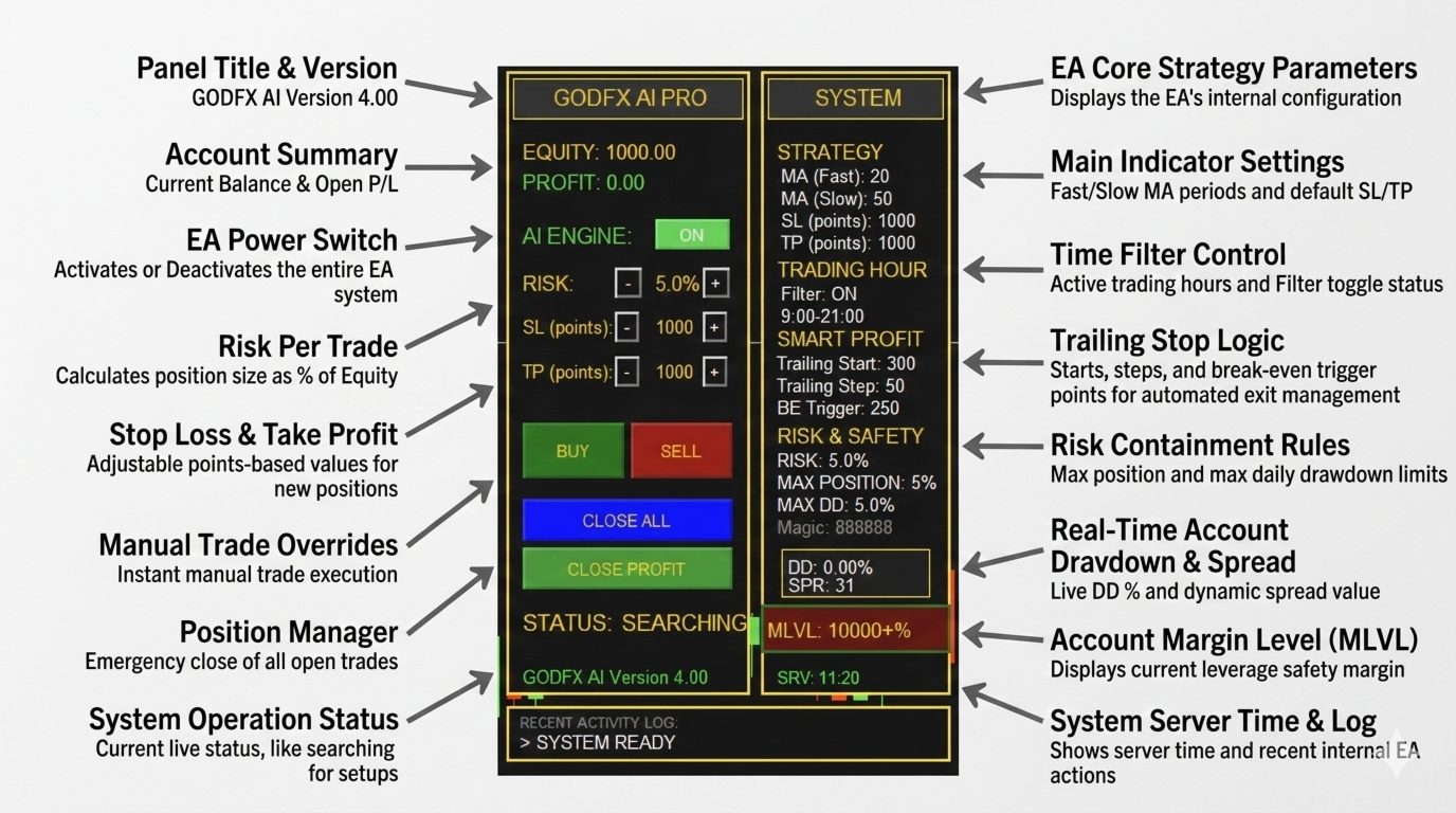 GODFX AI PRO includes automated tools designed to protect profitable trades.