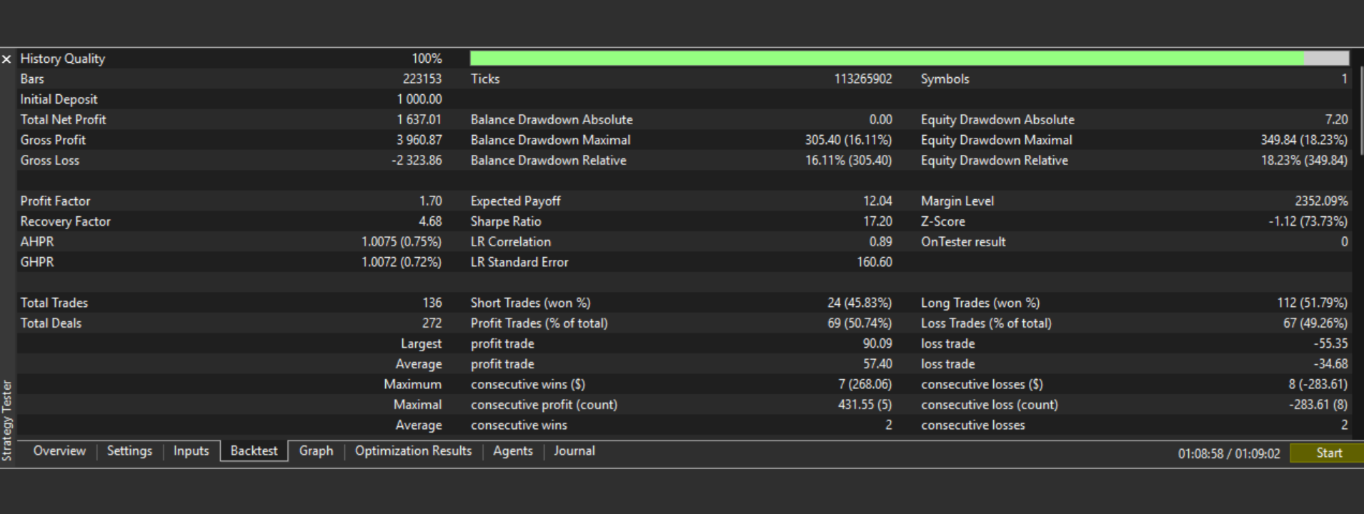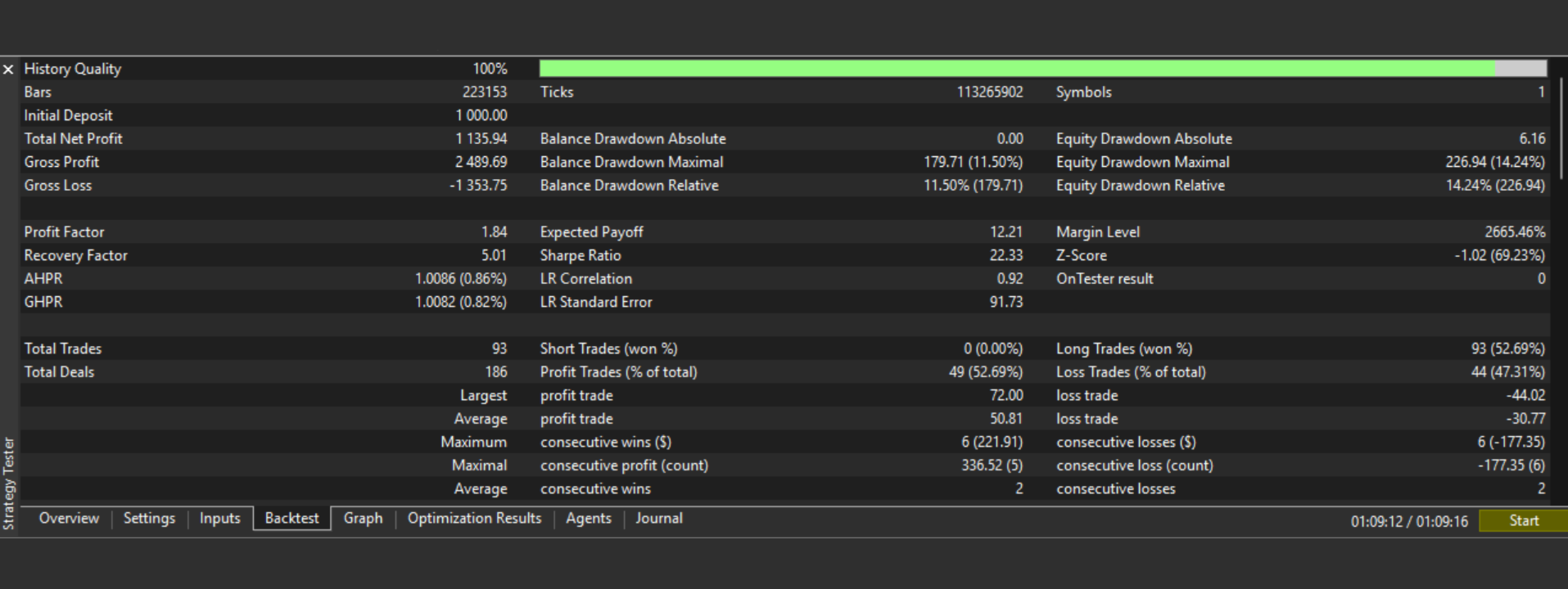 | Pullback | +113.6% | $1,136 | 93 | 52.7% | 1.84 | 13.7% |