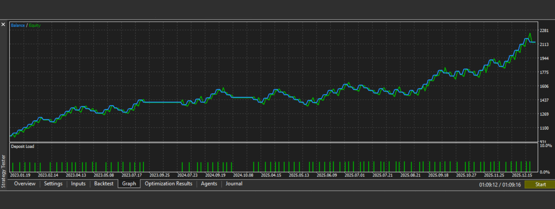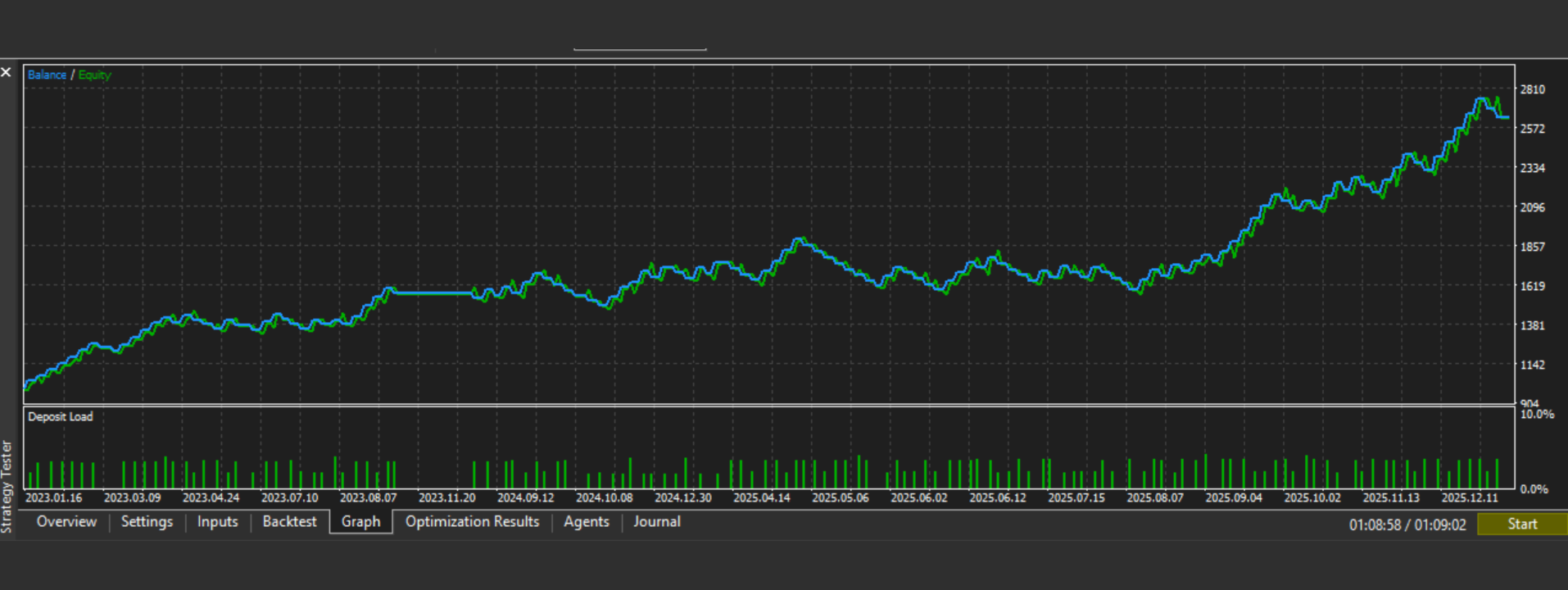 Period: January 2023 – December 2025 · Modelling: Every Tick · Starting balance: $1,000