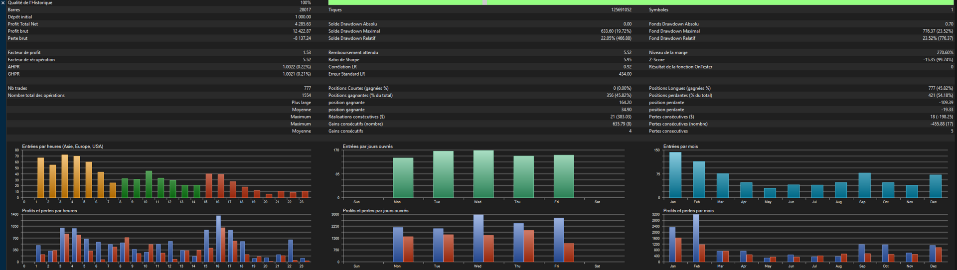 Parameters can be optimized depending on broker conditions and trading preferences.
