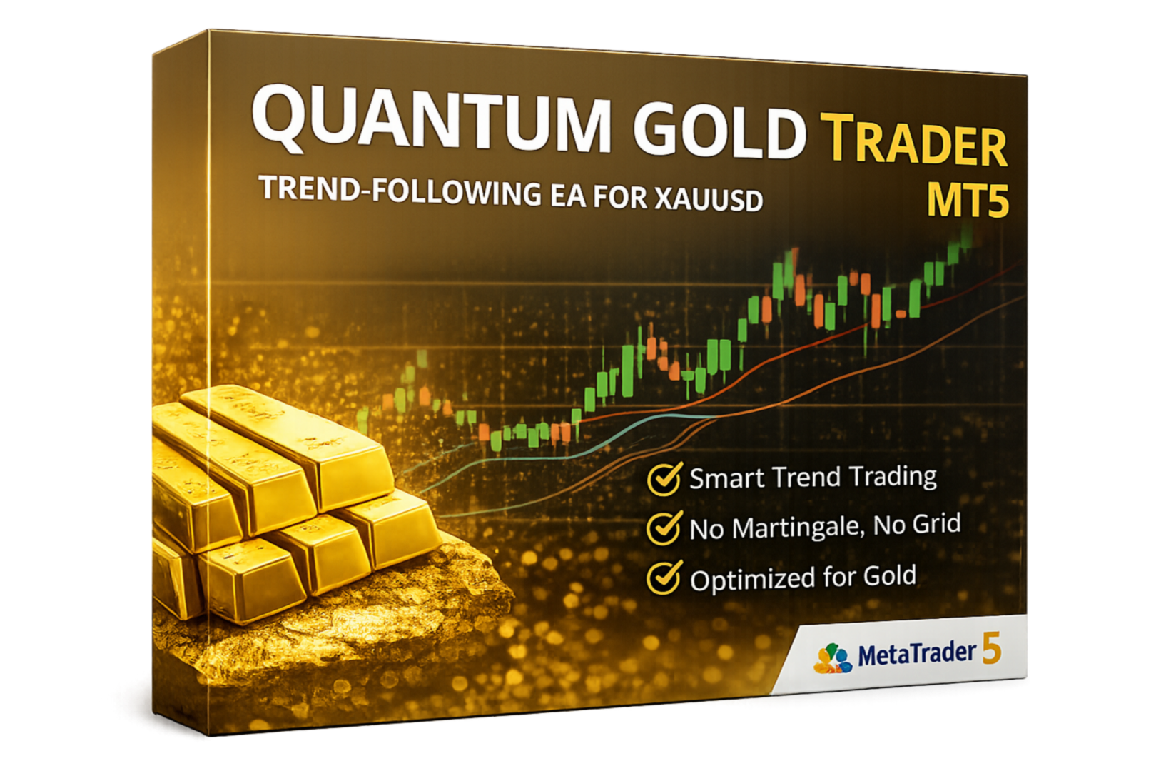 Quantum Gold Trader MT5 is an advanced Expert Advisor designed to automatically trade Gold (XAUUSD) using multi-timeframe analysis and intelligent trend detection.