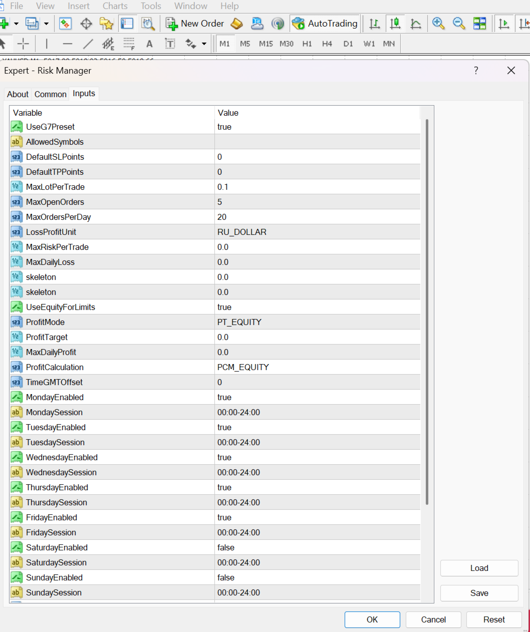 MondayEnabled … SundayEnabled – enable/disable trading for each day