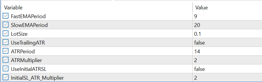 - 선택 가능한 ATR 기반 관리: 동적 ATR 트레일링 스탑과 선택적 초기 ATR 손절을 지원합니다.
