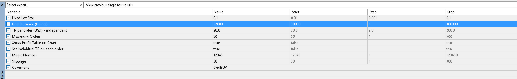 The system is set to open Buy orders only (one-sided trading), which helps simplify the strategy and is suitable for traders who focus on upward market trends.