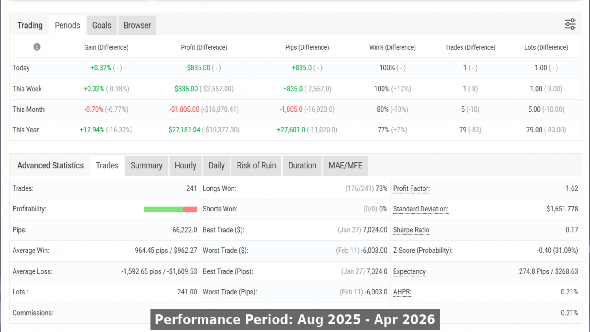 No Grid or Martingale: Pure execution system with fixed risk per trade.