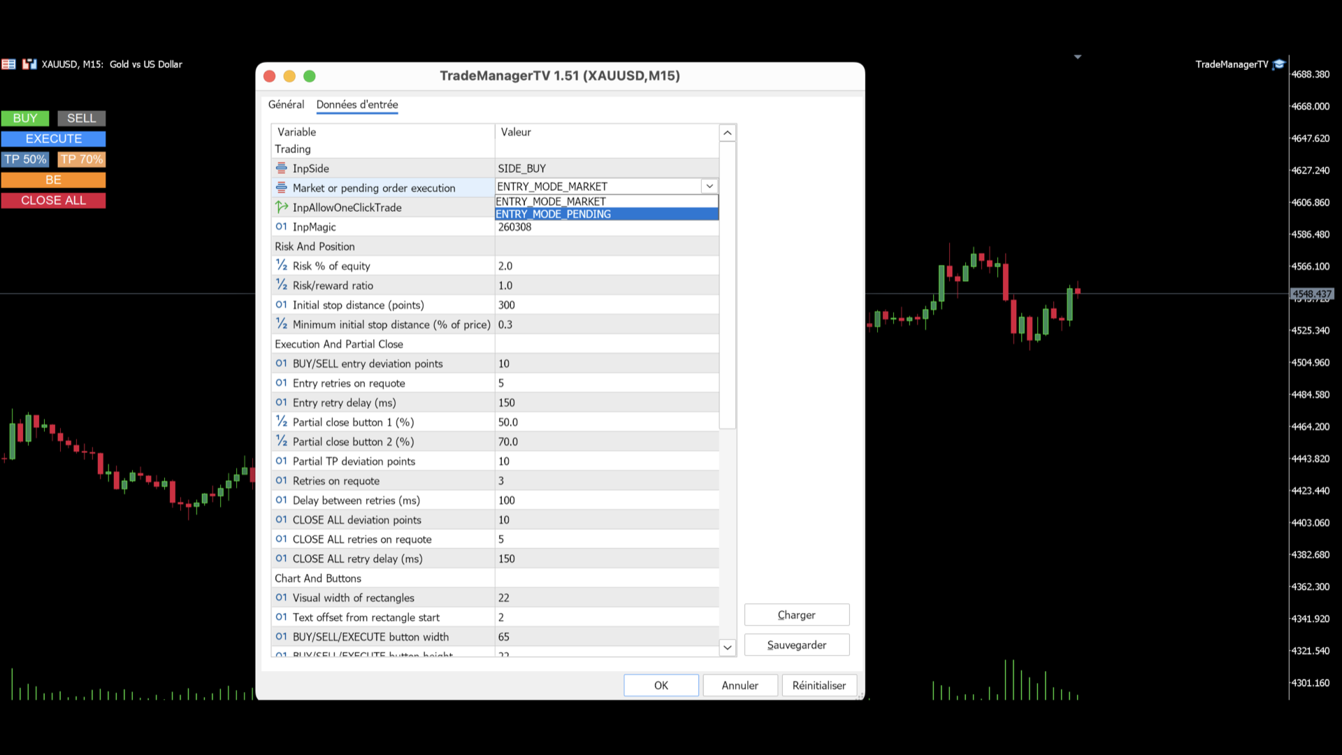 - BUY and SELL switching directly from chart buttons