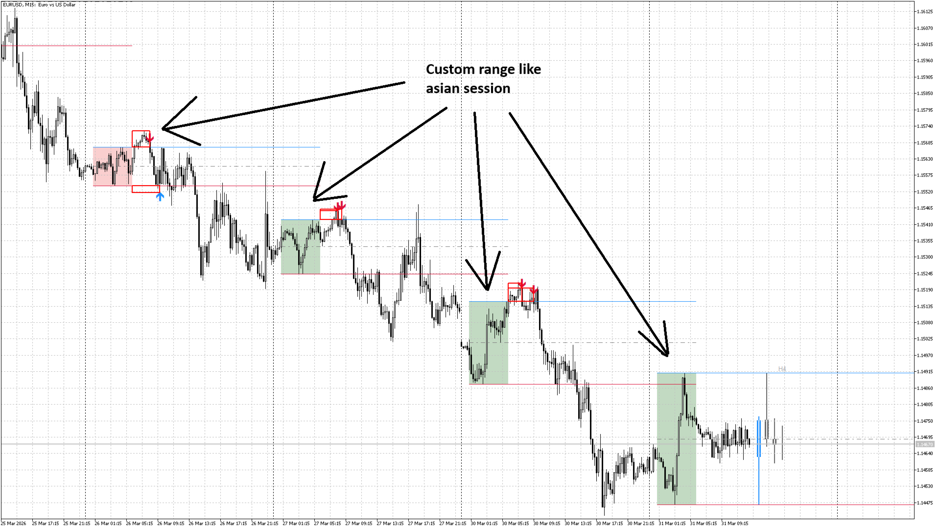 - Range Timeframe: If using HTF mode, this defines which higher timeframe generates the range (e.g., PERIOD_H4).
