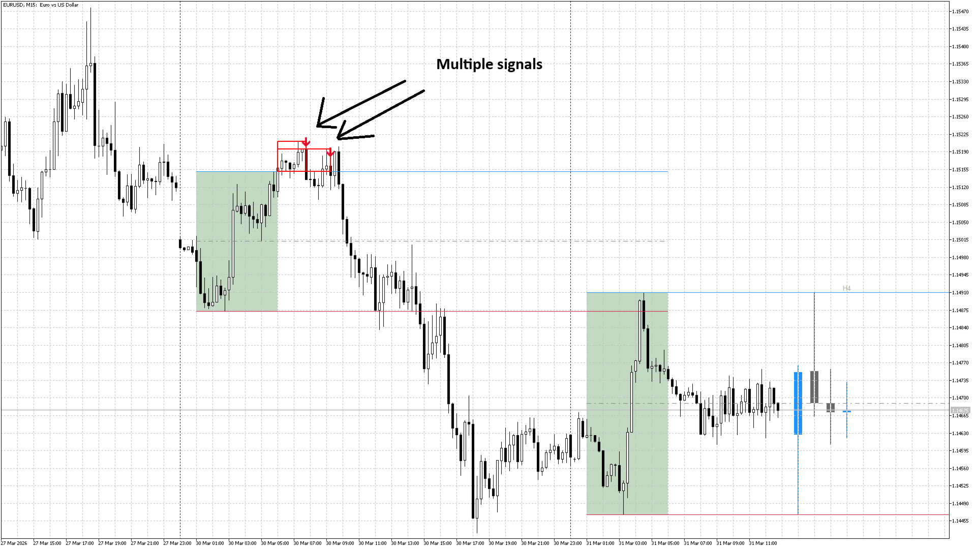 - Max Signals Per Range: Limits the number of trade signals triggered on the same accumulation block to prevent overtrading.