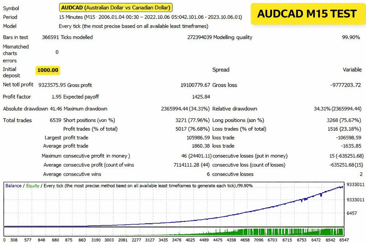 The EA must be attached to ONLY one M15 chart, AUDCAD is recommended