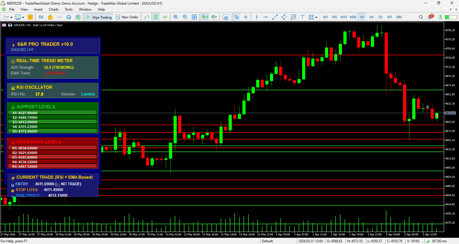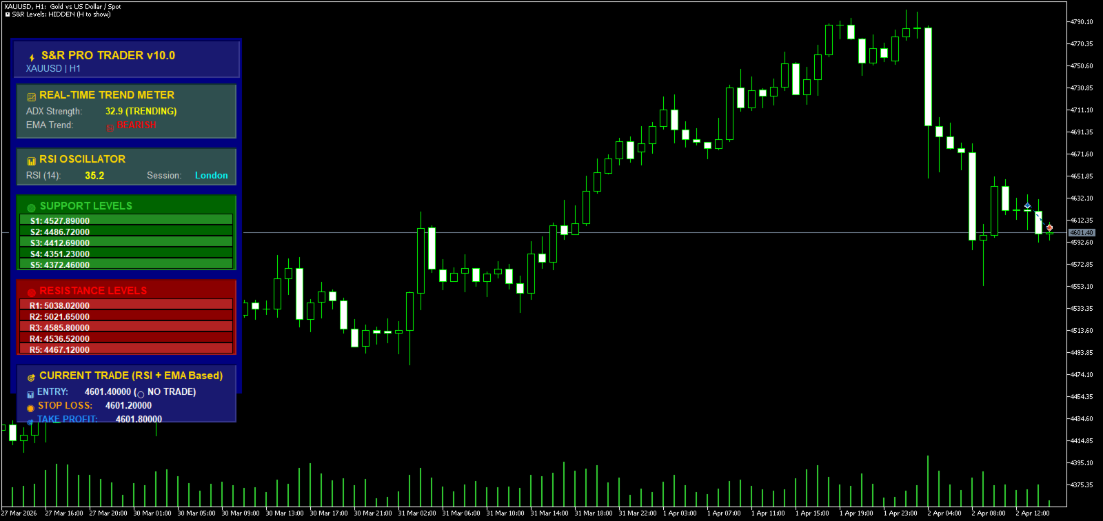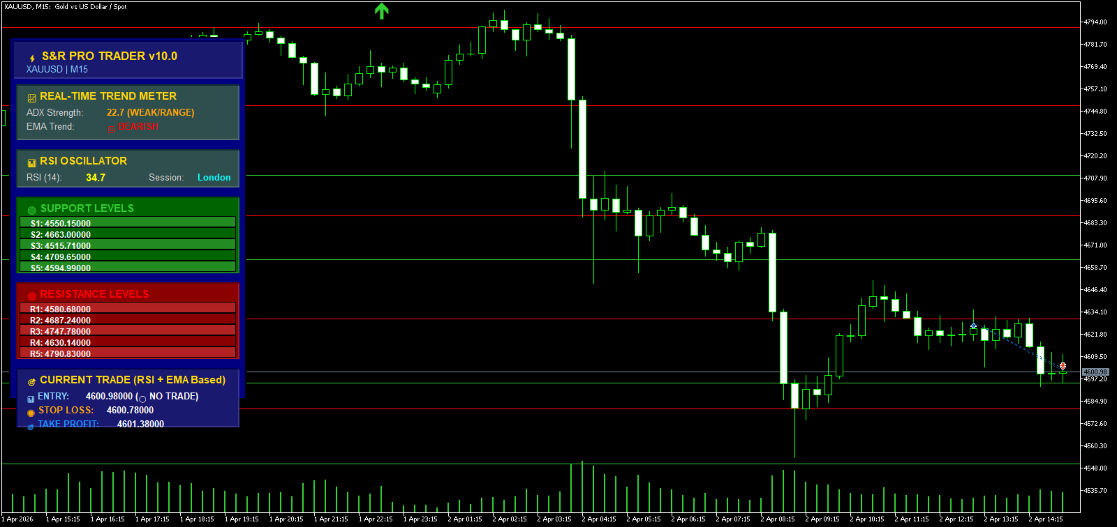 ProSR Elite MTF is a complete trading assistant for MetaTrader 5 designed for Forex, Gold, Indices, Crypto, Oil, and Stocks.