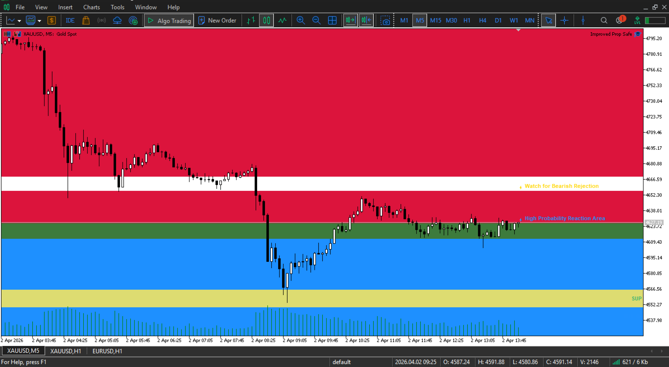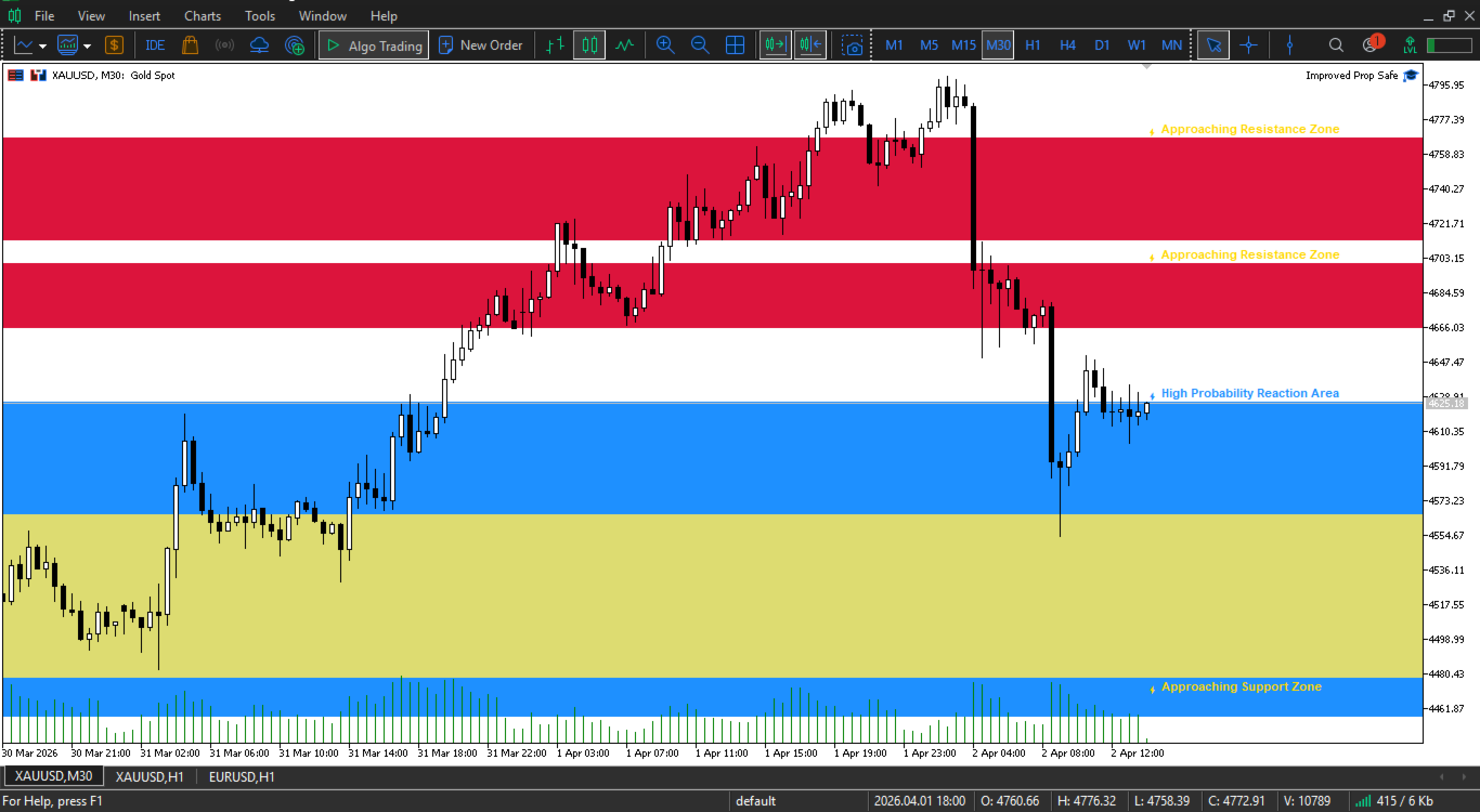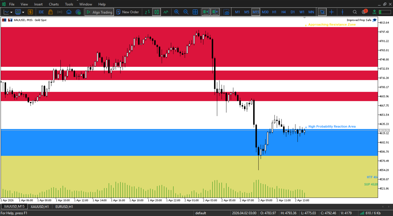Higher timeframe zones are the areas where the largest moves in gold typically originate. Having them automatically identified and highlighted directly on your chart gives you a significant analytical advantage.