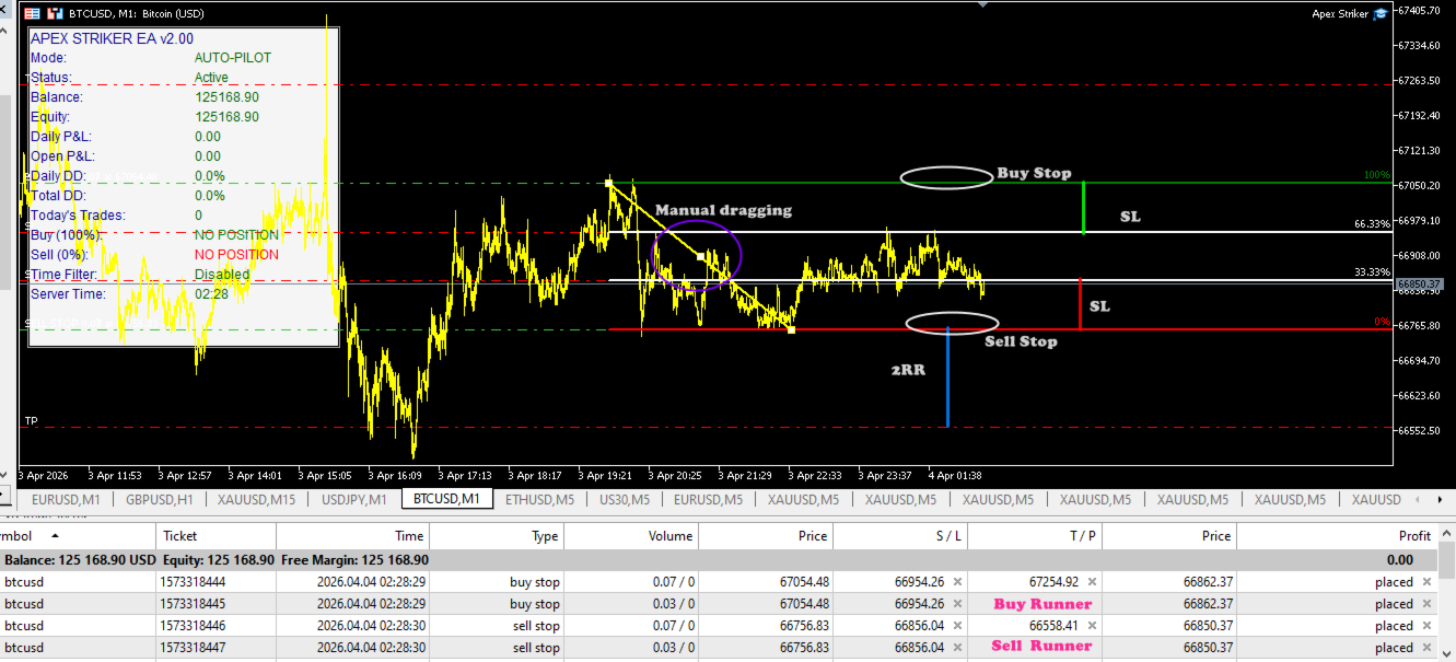 Why this matters: Traditional Fibonacci EAs leave old pending orders behind. This EA ensures your orders are ALWAYS at the correct breakout levels, even when market conditions change.