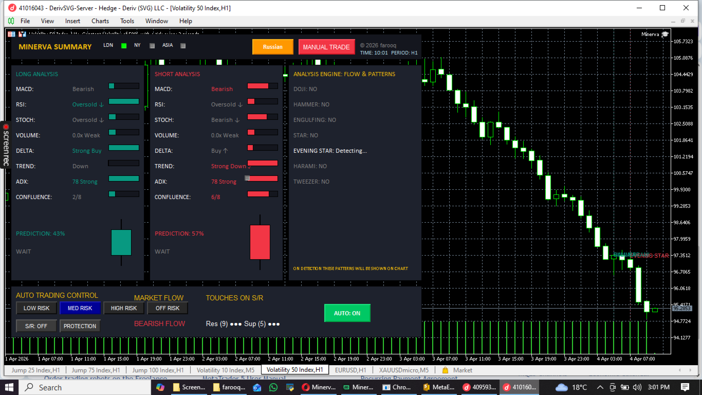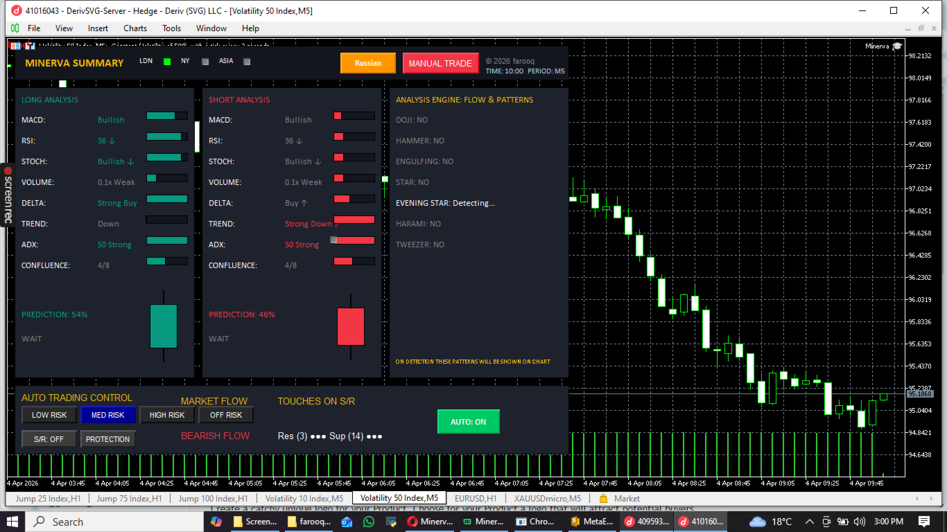 - Predictive Candle Projection : See the future before it happens! Minerva’s unique visual engine projects the most likely next candle directly on your chart, giving you a massive psychological edge.
