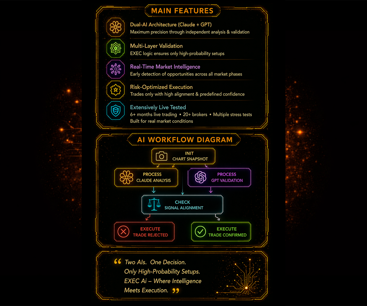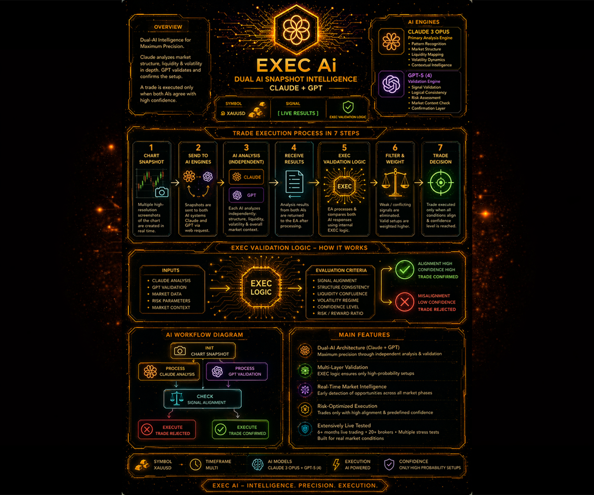 두 AI 시스템의 분석 결과가 준비되면 EA는 EXEC 검증 로직을 사용하여 결과를 처리하고 이를 구조화된 의사결정 프로세스로 통합합니다.