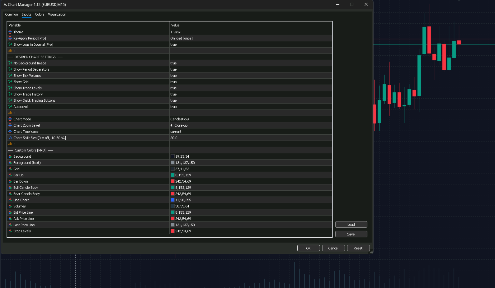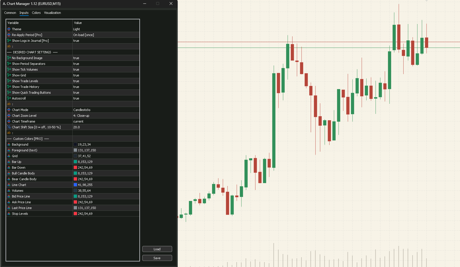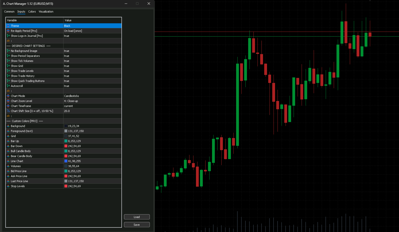 - Auto Re-Apply Timer — override EA color resets every 5 min to 24 hours