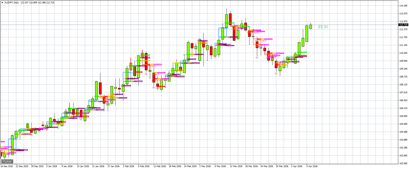 ✔ Order Blocks (OB)