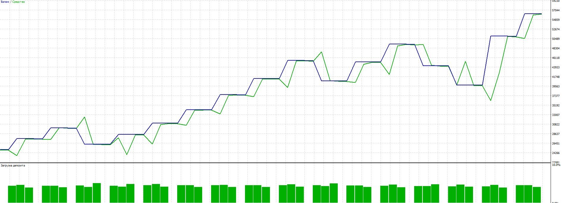 - Dynamic Adaptation: The robot does not use fixed point values for entry. Instead, it calculates the entry threshold as a percentage of the current range, adapting to market volatility (whether in a flat or a strong trend).