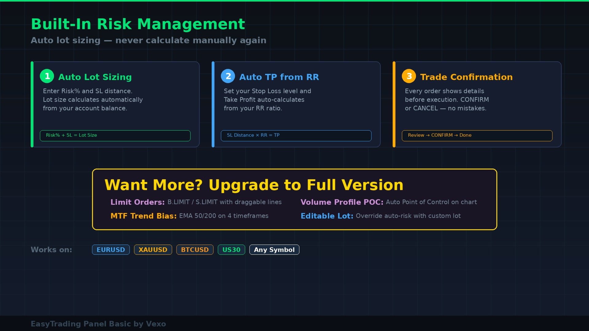 | SL / TP Auto-Calculation | ✓ | ✓ |