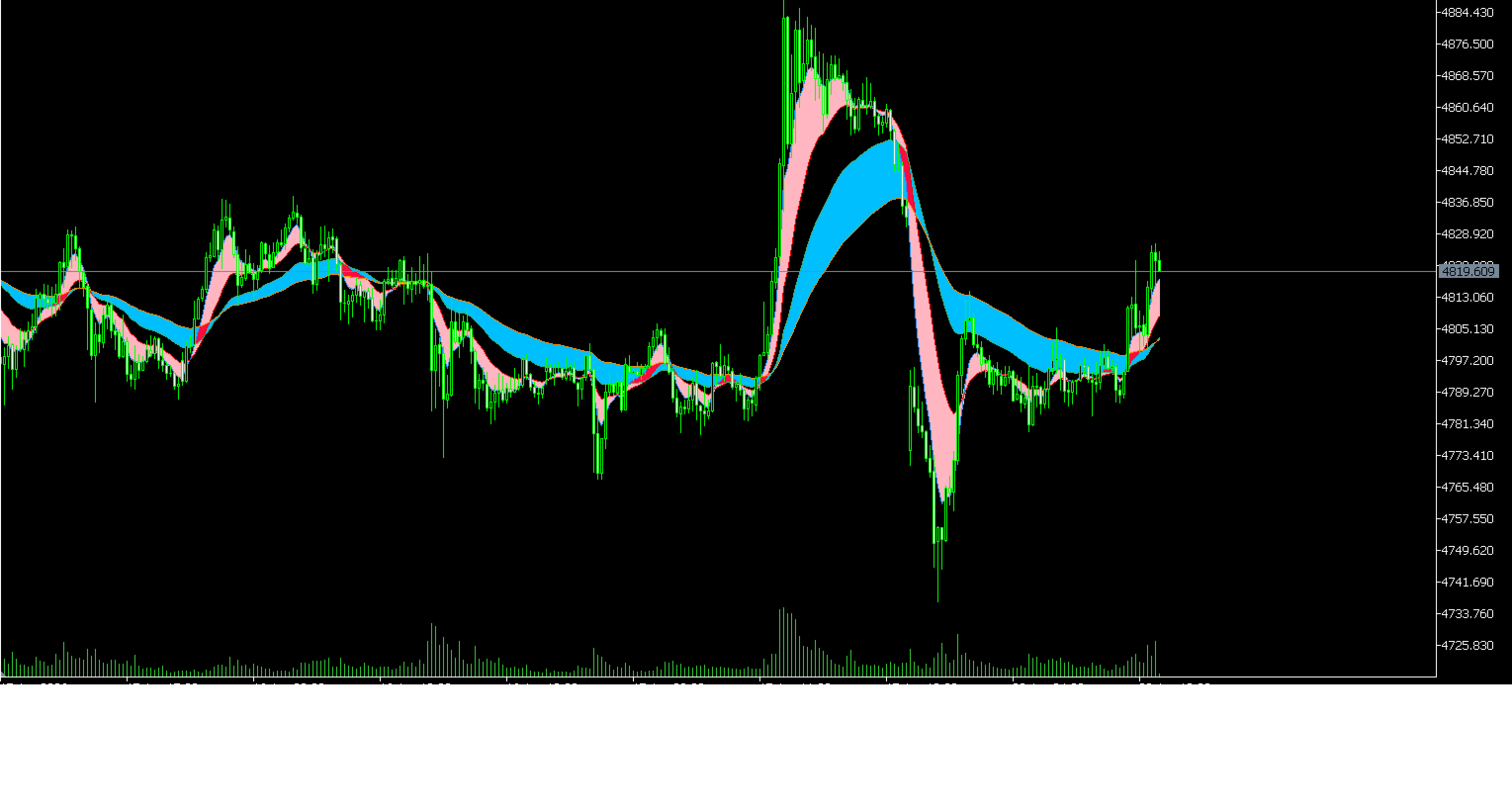 Slow Cloud (Light Blue): Represents the long-term trend. This serves as the primary "baseline" for the overall market direction.