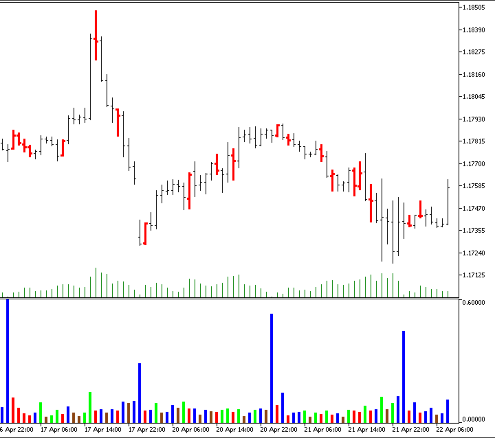 MFI = (High − Low) / Volume. Compared with previous bar.