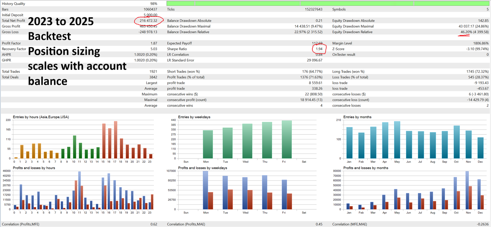 Links below to setfiles for those running larger account sizes. Note you can run the default position sizes for much larger accounts, this will simply reduce the expected drawdown. Whatever account size you use, consider using the hard stop loss feature. However, if you do use this feature, make sure you give the account enough “breathing room” to account for expected drawdown.