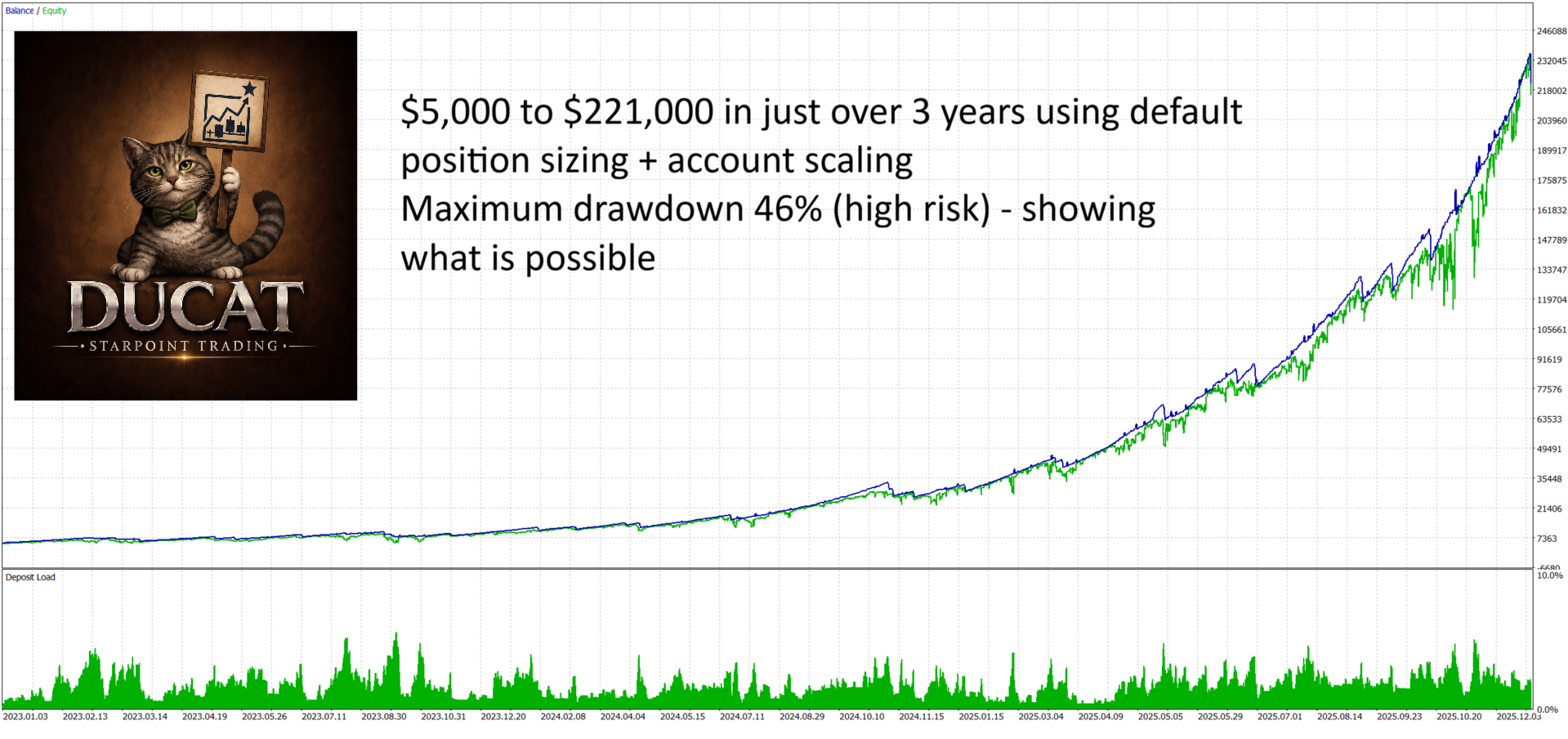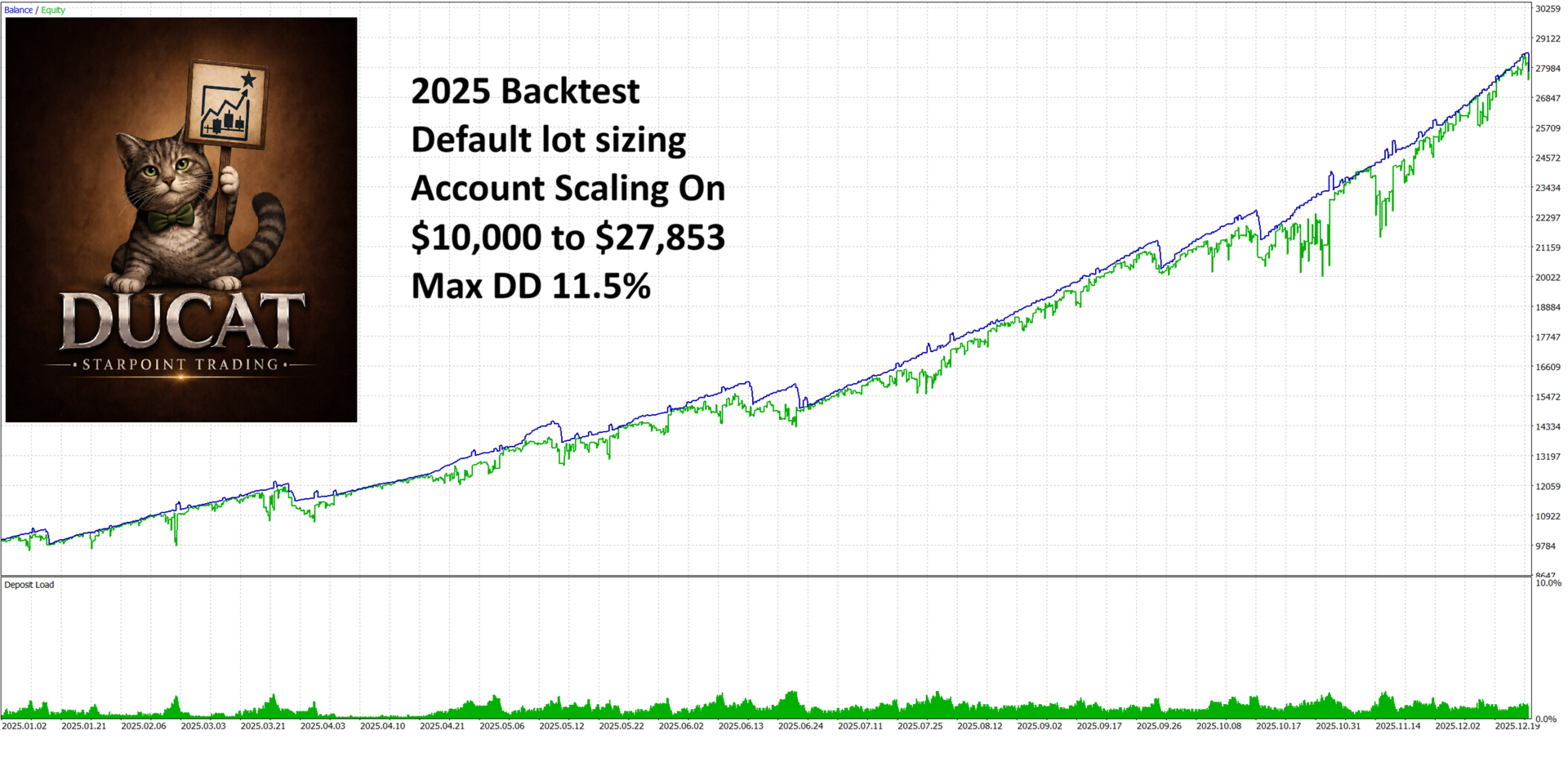 Are you tired of Expert Advisors that perform brilliantly in backtests — right up until the day they go live, then fail spectacularly in the weeks that follow? Sick of breakout systems that trigger positions only to watch them move straight to stop loss, over and over? Fed up with EAs that require perfect spreads, zero slippage, and ideal conditions just to break even?Starpoint Trading is proud to bring you Ducat — built for traders who want long-term, worry-free, sustainable trading success. Not fast, volatile profits with equally fast and volatile losses. Real, compounding growth across a range of market conditions.