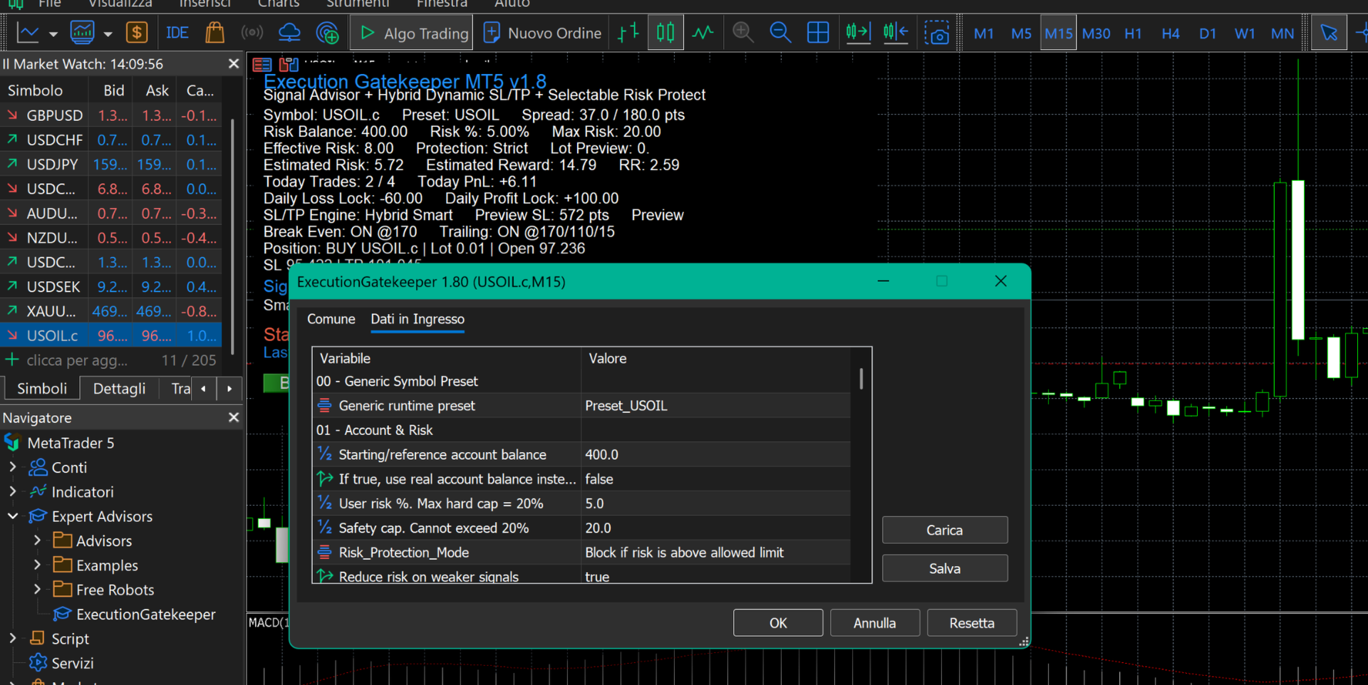 Smart Execution Gatekeeper is an advanced MetaTrader 5 execution panel designed to help manual and semi-manual traders operate with more discipline, better risk control and more consistent trade execution.