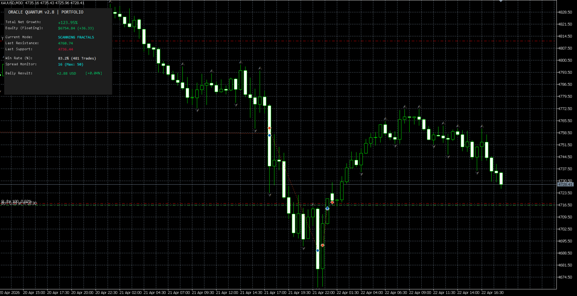Patience is Key: Oracle Quantum is a precision-based system. It does not "over-trade." There may be days without activity if the market does not meet the strict quantitative criteria for a high-probability entry.