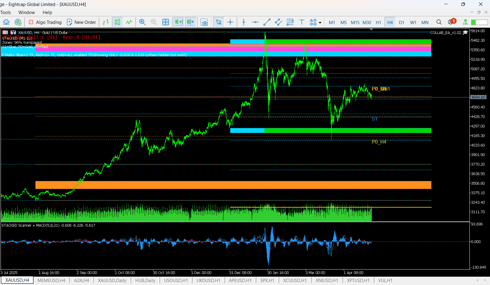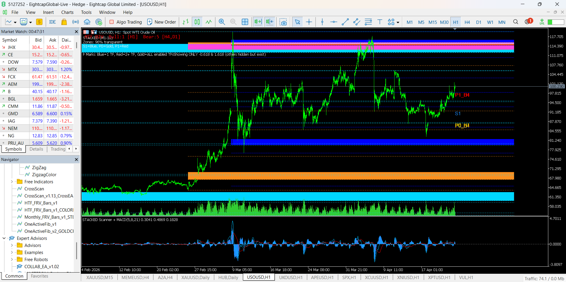 CrossScan is a MetaTrader 5 scanner indicator built for traders who want a clearer technical workflow based on structured Fibonacci mapping, MACD logic, divergence, pattern confirmation, and multi-timeframe confluence.