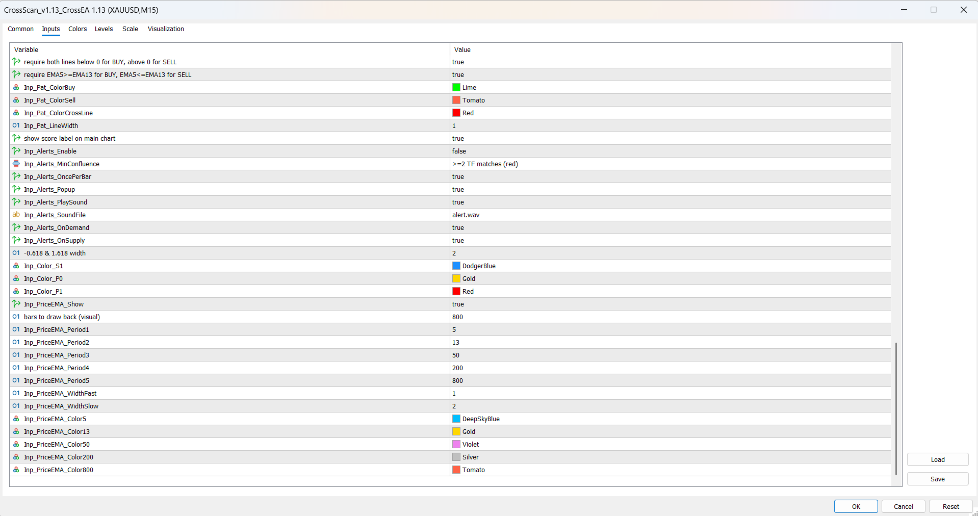 - enabled confluence timeframes such as H1, H4, D1, and MN1