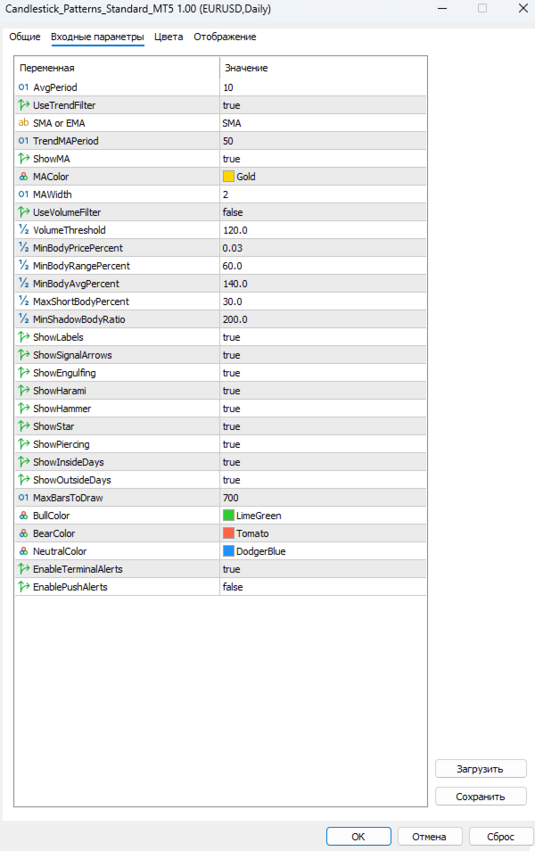 This indicator is not a trading robot and does not open trades automatically. It is a technical analysis tool for visual detection of candlestick patterns.