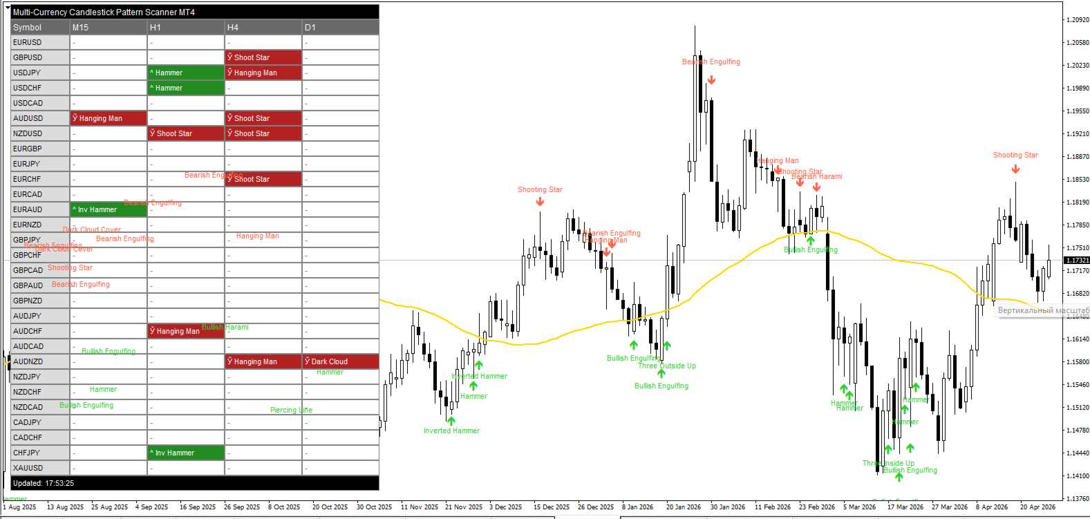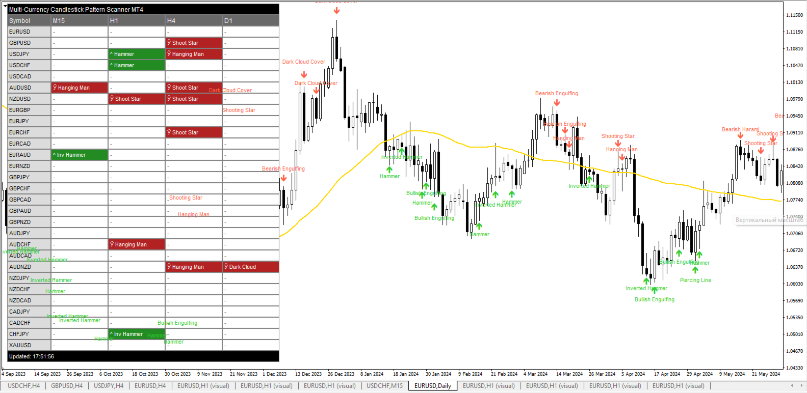 Multi-Currency Candlestick Pattern Scanner for MT4