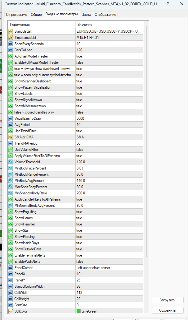 Multi-Currency Candlestick Pattern Scanner for MT4 is a practical tool for traders who need multi-currency and multi-timeframe Japanese candlestick pattern detection, a dashboard panel, visual chart signals, trend and volume filtering, and alerts directly inside MetaTrader 4.
