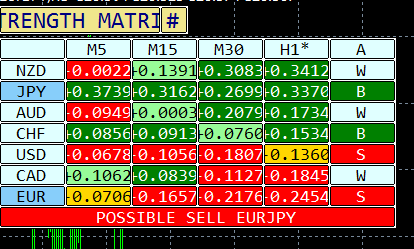 The Strength is a function of the difference between the value of the current MA and the one of the previous candle, taking into consideration all the pair of a currency.