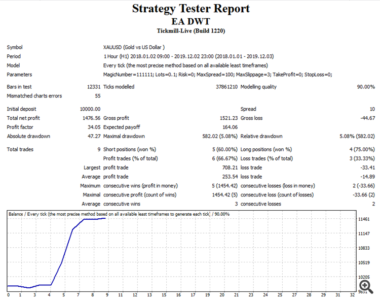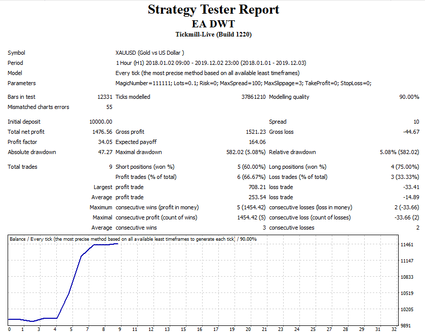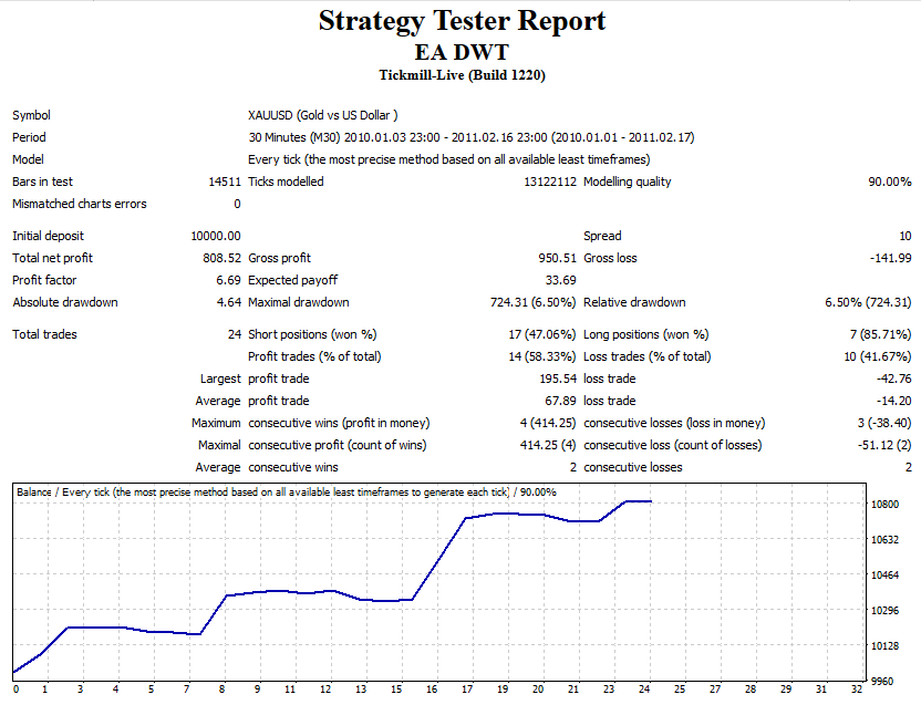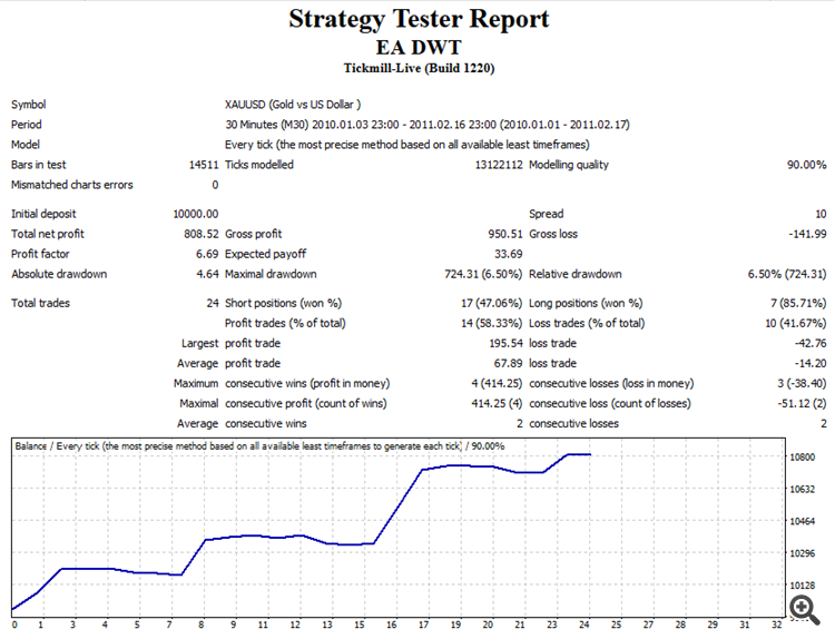 option of a scalper adviser using the Discrete Wavelet Transform indicator in automatic trading.The
