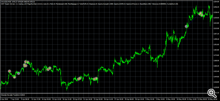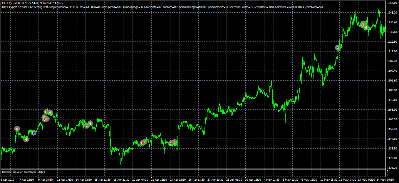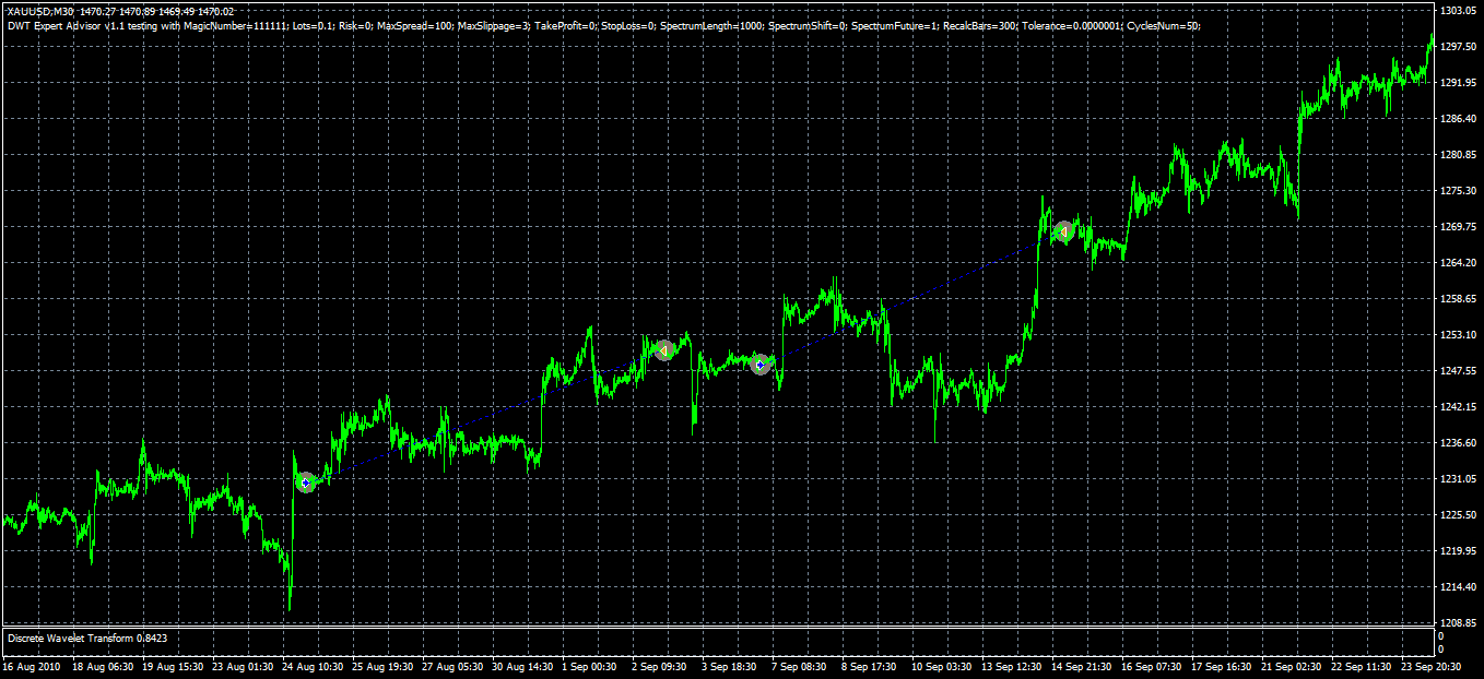 Example use of an indicator "Discrete wavelet transform" in an expert advisor.