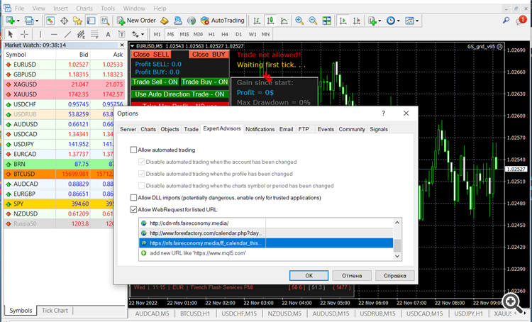 GS grid uses a universal algorithm and can work on various currency pairs and timeframes. Version 7.7 has lowered martingale settings, which increases the margin of safety of the Deposit. However, the current market situation is extremely volatile and unpredictable, so I recommend reviewing settings every week to avoid missing a significant trend in the unprofitable direction. Trading on the EURUSD pair is the most stable among others. For the XAUUSD pair to trade successfully, you need to set the parameters of the adviser in accordance with the weekly forecast.