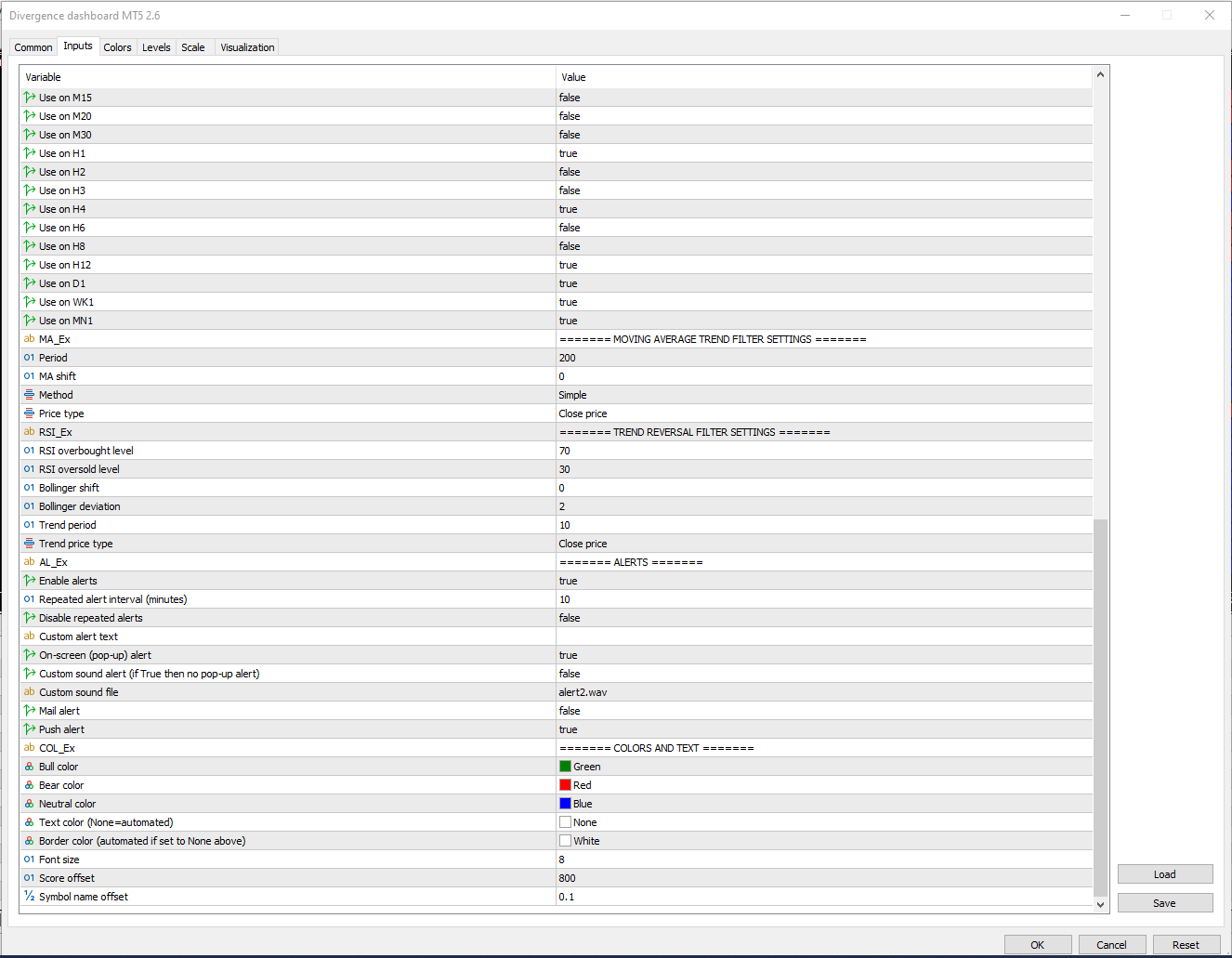 At times I have a problem, I cannot get the alarm to indicate to me through PopUp if a divergence has appeared. I need your help in this regard to