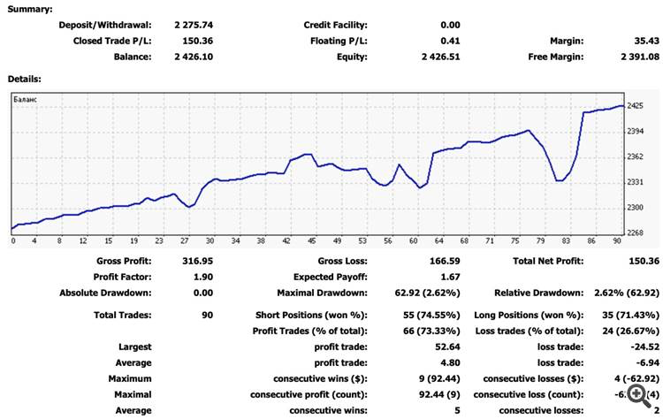 3 валютные пары из 13 для теста. Остальные настройки после покупки отправляются моментально.
