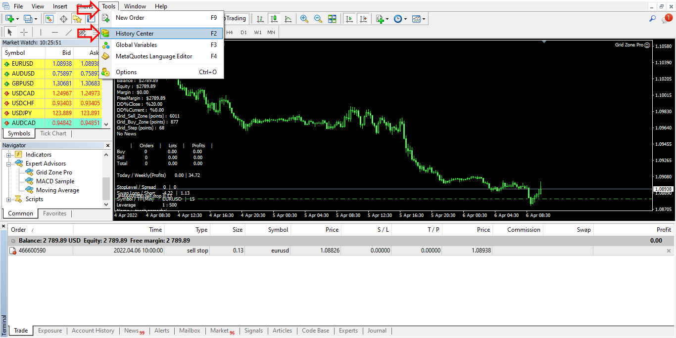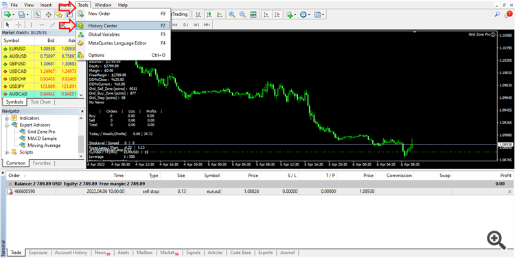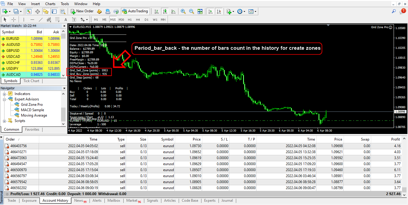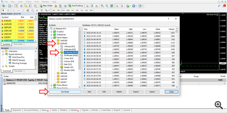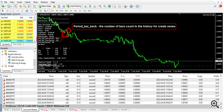 Set file and parameter settings Period_bar_back as follows: "Period_bar_back - The number of candlesticks counted backwards in the zone creation history." You need to download historical price data as shown in the image. So that the system can create trading zones from historical candlestick history to be used as indicators of trading signals.