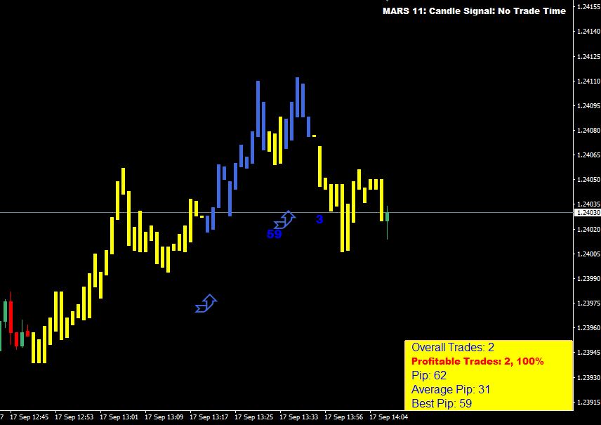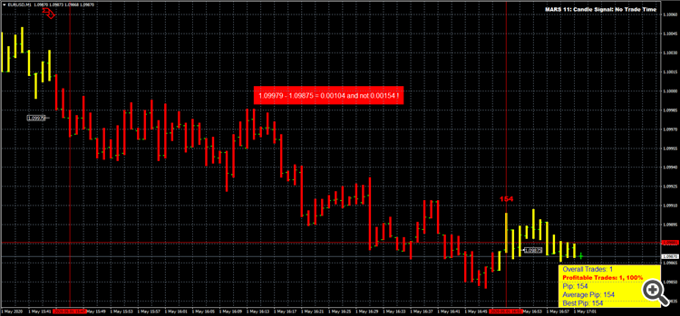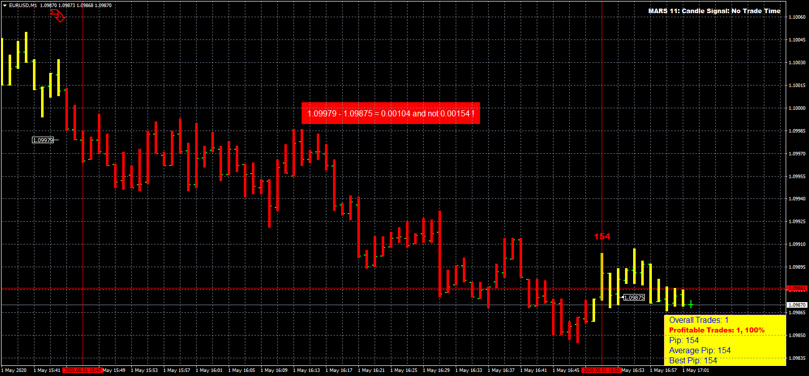 When you calculate the pips performance, do you start with the beginning of the candle you see the signal and you finish with the end of the candle