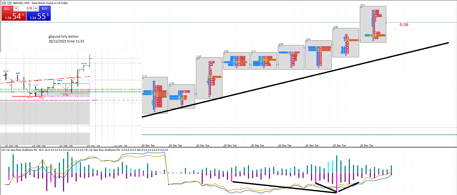 For example, if the current timeframe is M5, then the lower timeframe will be used M1, where there are only five M1 candles for each M5 candle.