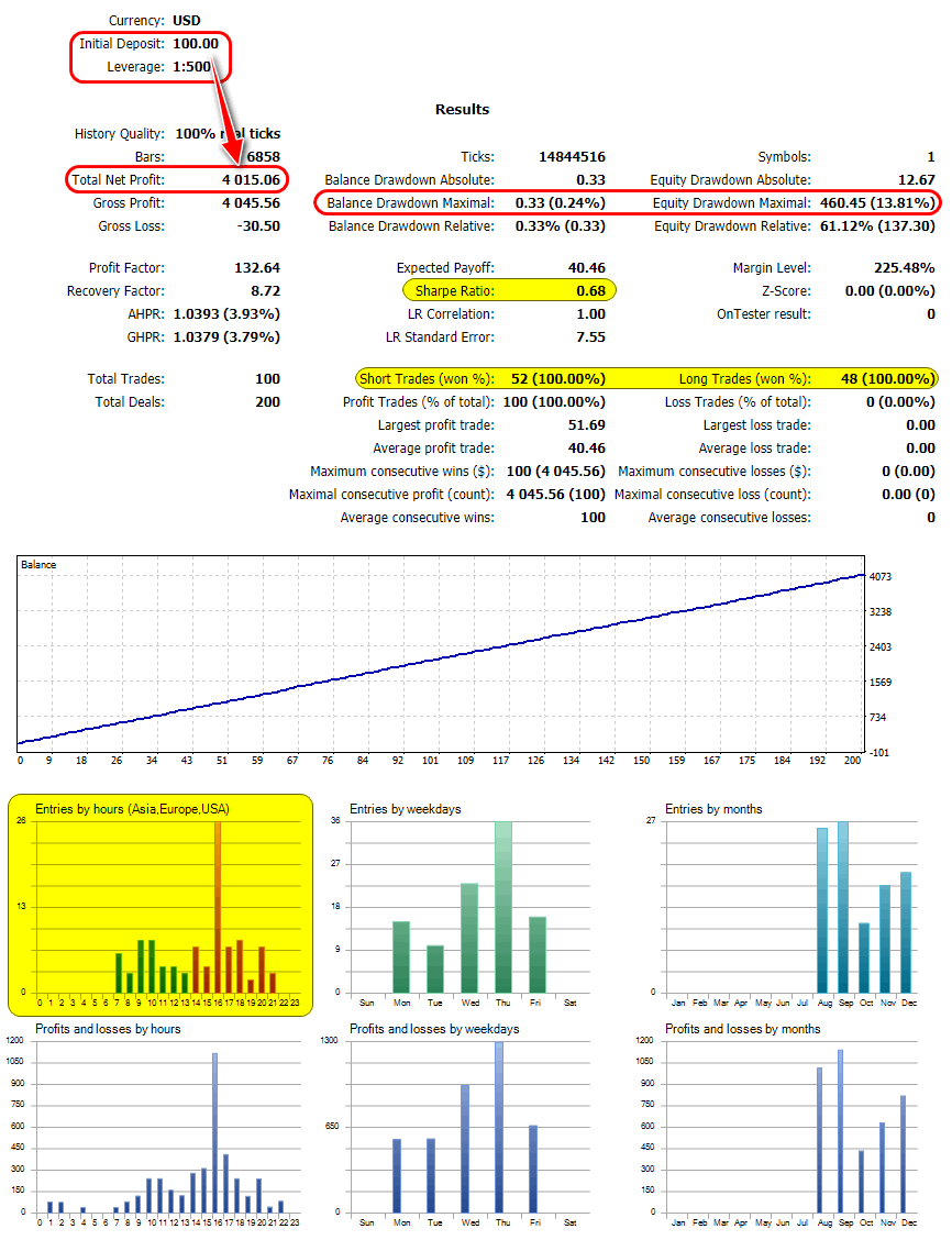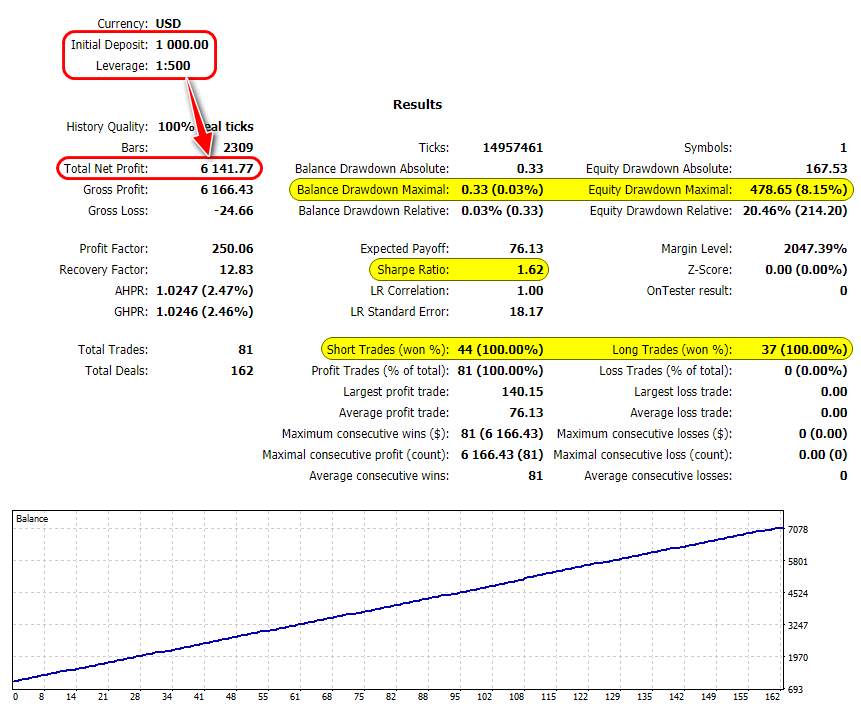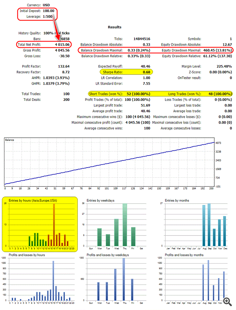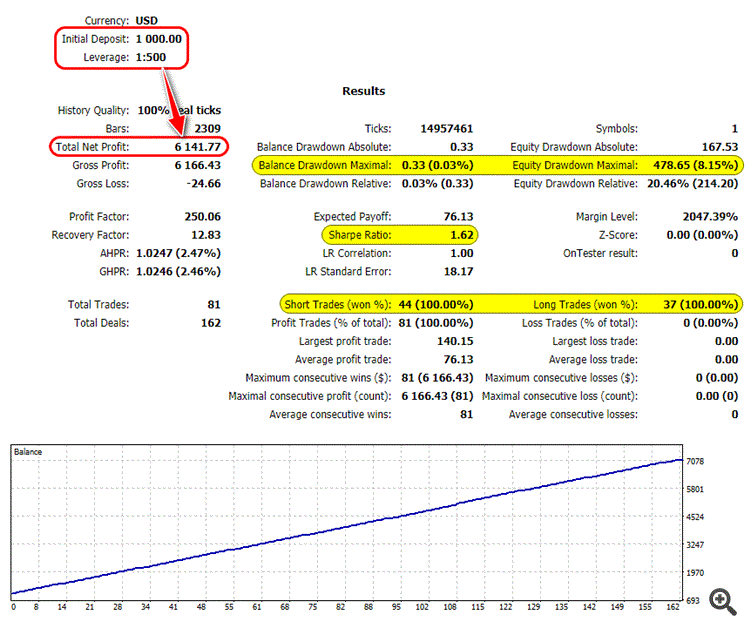 Говно не виданное. Ставишь на тест: за месяц в плюс, за год в минус, при этом месячный плюс не видит (не отрабатывает эти сделки), на оптимизации за год вообще не одной сделки. Мало того зря потраченное время. Ни в кое случае не ставьте на реальный счет.